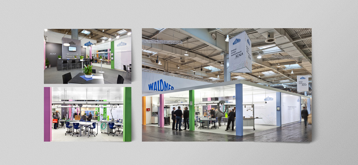 Konzeption, Gestaltung, Druck und Herstellung von Messeständen, Messezubehör, Bekleidung, Give Aways, Werbemaßnahmen für den Messeauftritt, Beklebungen, Plakate, Banner.