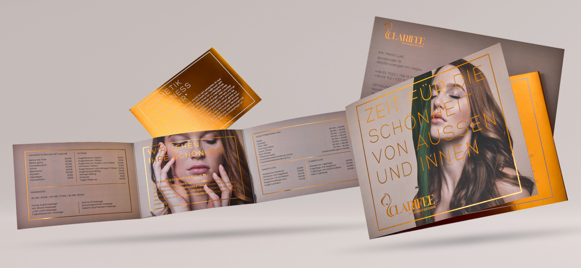Konzeption und Gestaltung Flyer und Fensterbeklebung.